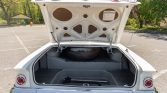 The body was reportedly repainted in its factory white during the refurbishment and features a power-operated black soft top that is believed to have been replaced around the same time. Style elements include rear fender skirts, triple horizontal taillights, chrome bumpers and rocker moldings, and body-side trim with a black fill section. An interior-matching red boot cover is included.