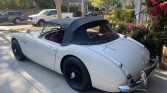 This 1962 Austin-Healey 3000 is a four-place BT7 Mk II roadster powered by a triple-carbureted and overbored 2.9L inline-six mated to a four-speed manual transmission with overdrive. It is said to have remained in the care of a single owner between 1969 and 2019, at which time it was purchased by the seller. The car is finished in Old English White over red leather, and features include a black convertible top and boot, black-finished 15″ wire wheels, an electric fuel pump, a stainless-steel exhaust system, and a stainless-steel radiator with an electric cooling fan.
