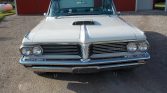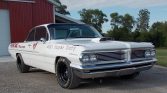 This 1962 Pontiac Catalina is a modified example that was initially built in the style of a Super Stock drag car and fitted with a Chevrolet bubble-top roof conversion in 2007 by Greene’s Classic Cars of Lenoir City, Tennessee. The car is powered by a 421ci Pontiac Super-Duty V8 fitted with dual Edelbrock carburetors and paired with a Borg Warner T10 four-speed manual transmission and was acquired approximately three years ago by the seller. The car is finished in white over a tri-colored interior, and additional equipment includes a quick-ratio steering box, adjustable coilovers, sway bars, front disc brakes, a hood scoop, side-exit exhaust pipes, and widened steel wheels with white-letter Goodyear tires.