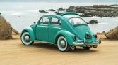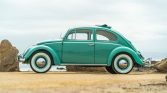This 1962 Volkswagen Beetle was acquired by the current owner in 1997 and was subsequently refurbished, with work including a repaint in turquoise, a 12-volt electrical conversion, installing Firestone whitewall tires, and replacing the sunroof cover, spark plugs, ignition wires, distributor, wiring harness, carburetor, and fuel and brake-system components. Power is from a 1.2-liter flat-four paired with a four-speed manual transaxle, and equipment includes chrome bumpers, running boards, rear mud flaps, beige vinyl upholstery, and a spare…