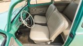 The car was refinished, reportedly in the original turquoise (L380), and it features a sunroof with a matching vinyl cover, running boards, Volkswagen-branded rear mud flaps, and chrome bumpers and trim. The windshield wipers are disconnected and retain a six-volt wiper motor, and the rear fenders were repainted more recently than the rest of the body.