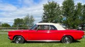 This 1963 Chevrolet Corvair Monza Spyder convertible is finished in red over red upholstery and powered by a turbocharged 145ci flat-six mated to a four-speed manual transaxle. Equipment includes a white soft top, a louvered engine cover, 13″ steel wheels, ‘Monza Spyder’ badging, and chrome bumpers and trim. The car was acquired by the current owner in 2010, and recent service included an oil change.
