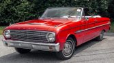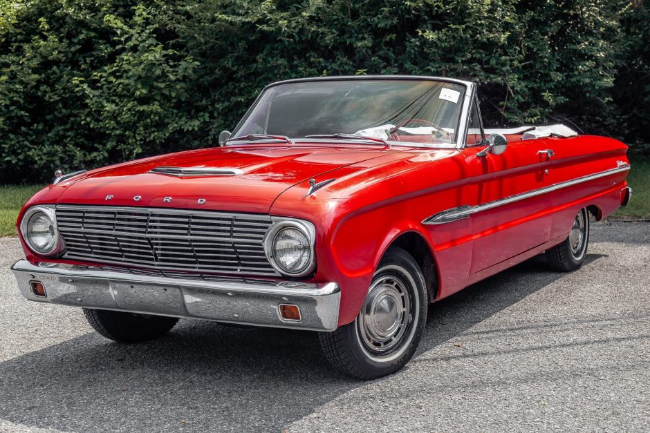 …This 1963 Ford Falcon Futura convertible was refurbished in Texas under previous ownership and spent time in Georgia before it was purchased by the seller in November of 2019. The car is finished in red over two-tone red and white vinyl, and power is provided by a 170ci inline-six paired with a two-speed automatic transmission. Equipment includes a white convertible top, a matching top boot, whitewall tires, chrome bumpers and trim, and an aftermarket CD stereo.