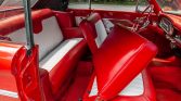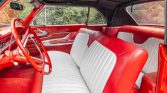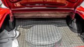 The car is said to have been repainted red in 2018 and features chrome bumpers, polished body-side trim, dual side mirrors, and a white convertible top that was fitted with a replacement hydraulic cylinder under previous ownership. Corrosion is noted in both rocker panels, as are bubbles in the passenger door.