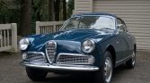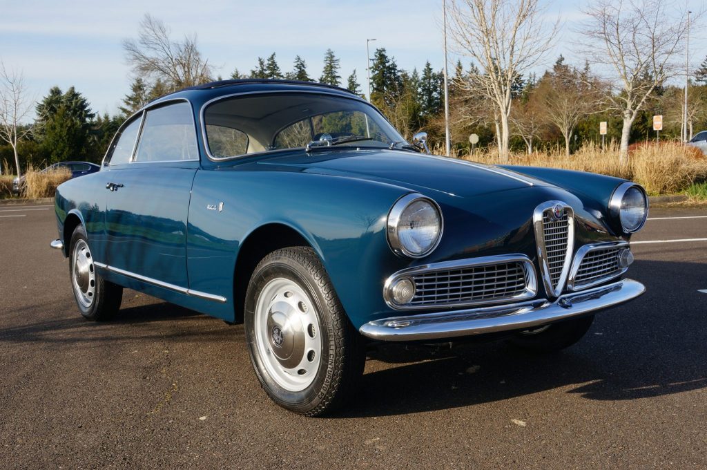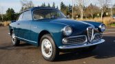 This 1964 Alfa Romeo Giulia Sprint was built on July 3, 1963 and purchased by the current owner in 1969. Finished in Bluette over a gray interior, the car is powered by a 1,600L twin-cam inline-four paired with a five-speed manual transmission. Equipment includes a Golde sliding cloth roof, 15″ wheels, and an AM/FM push-button radio. A cosmetic refurbishment was carried out around two decades ago, and the engine was rebuilt in 2009.