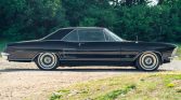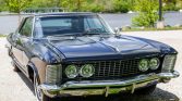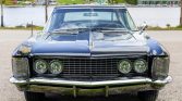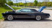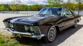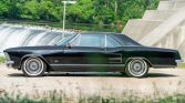 This 1964 Buick Riviera is finished in black over black vinyl and equipped with power steering, brakes, and windows along with a four-way power-adjustable driver seat and a retro-look stereo. Power is supplied by a replacement 425ci V8 mated to a three-speed automatic transmission, and service under current ownership included replacement of the starter and valve-cover gaskets along with setting the timing.