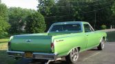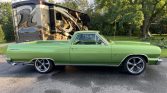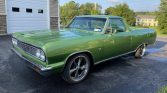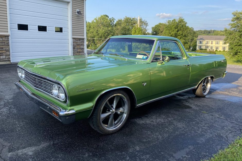 This 1964 Chevrolet El Camino is finished in metallic green over black vinyl and is powered by a 454ci V8 paired with a four-speed manual transmission. Features include a Gibson exhaust system, power steering, power-assisted front disc brakes, 18″ Boyd Coddington wheels, and a Hurst shifter. The seller states that the car was acquired in Arizona and relocated to New York in 2020.