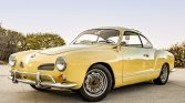 This 1964 Volkswagen Karmann Ghia coupe is powered by a rebuilt 1,720cc flat-four sourced from a 1969 Porsche 912 and paired with a four-speed manual gearbox from Rancho Performance Transaxles. The car reportedly spent time in Arizona prior to being acquired by the seller in 2015 and relocated to California. A subsequent refurbishment was carried out that included refinishing the car in yellow, reupholstering the custom leather and cloth interior, replacing rubber seals, and installing the replacement drivetrain. Equipment includes 15″ wheels, chrome bumpers and trim, a sliding fabric sunroof, a Blaupunkt AM/FM radio, and dual exhaust outlets. Service preformed in preparation for the sale included an oil change and replacement of the axle boot and the starter and relay.