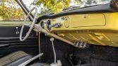 Previously metallic blue, the car was stripped, the glass was removed, and the body was refinished in Manila Yellow (L560) under current ownership, according to the seller. The bumpers also were rechromed and rubber seals replaced during the refurbishment.