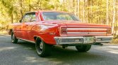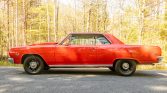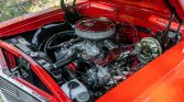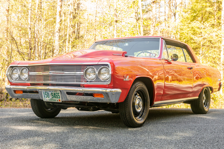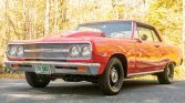 This 1965 Chevrolet Malibu Sport Coupe is powered by a 396ci V8 fitted with aluminum cylinder heads and mated to a five-speed manual transmission and is finished in orange over a black vinyl interior. Additional modifications include Hedman headers, a Holley carburetor, an Edelbrock intake manifold, MSD ignition, KYB shocks, Flowmaster mufflers, staggered-width 15″ wheels, power-assisted front disc brakes, and a power steering conversion.