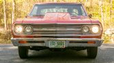The interior is said to have been reupholstered in 2017 and is trimmed in black vinyl with matching door panels and carpets. Amenities include Chevelle-branded floor mats, a locking glove compartment, lap belts, a push-button radio, and a Hurst shifter.