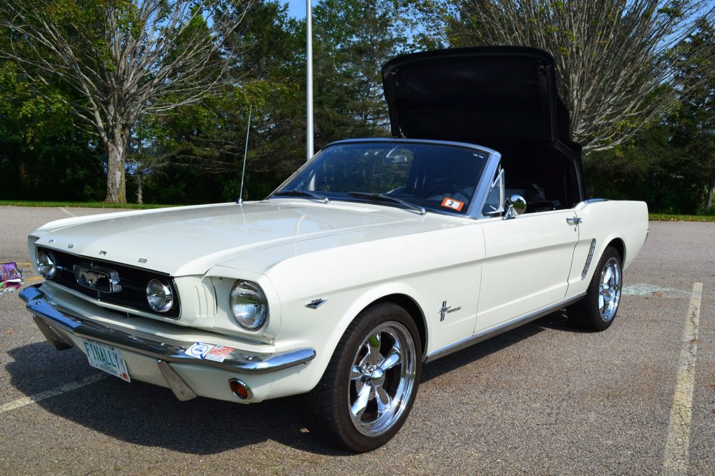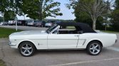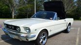 This 1965 Ford Mustang convertible is finished in Wimbledon White over a black vinyl interior and powered by a 289ci V8 paired with a five-speed manual transmission and a limited-slip differential. Features include power-operated black soft top, front disc brakes, power steering, fog lamps, GT dual-outlet exhaust, Chrome 17″ wheels, lap belts, Rally Pac gauges, and a retro-look stereo. The car was acquired by the seller in 2012 from the estate of the original owner and subsequently…