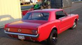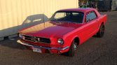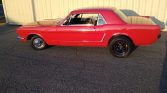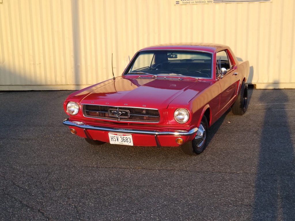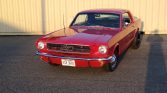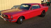 …This 1965 Ford Mustang is finished in red over black vinyl and powered by a 200ci straight-six mated to a three-speed automatic transmission. Features include 13″ steel wheels with polished covers, a two-wheel set of black-finished 15″ American Racing wheels, chrome bumpers and trim, front and rear crank windows, and a Phase Linear CD stereo. The car was manufactured on May 12, 1965 at the Dearborn, Michigan plant, and was acquired by the seller in 2017.