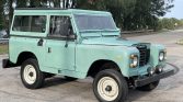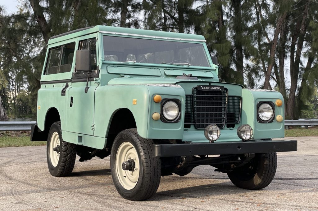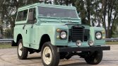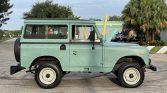 This 1965 Land Rover 88 is a left-hand drive Series IIA model that was produced by Metalurgica de Santa Ana S.A. in Spain and is finished in green over a black interior. The truck is powered by a 2.25-liter gasoline inline-four mated with a four-speed manual transmission and a two-speed transfer case, and additional equipment includes 16” steel wheels, manually-locking front hubs, driving lamps, troop-style rear seats, and an aftermarket rear bumper.