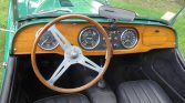 The three-spoke steering wheel features a wood rim and frames Smiths instrumentation that includes a 6k-rpm tachometer, a combination gauge, and a 140-mph speedometer. 13k miles are shown on the five-digit odometer.