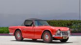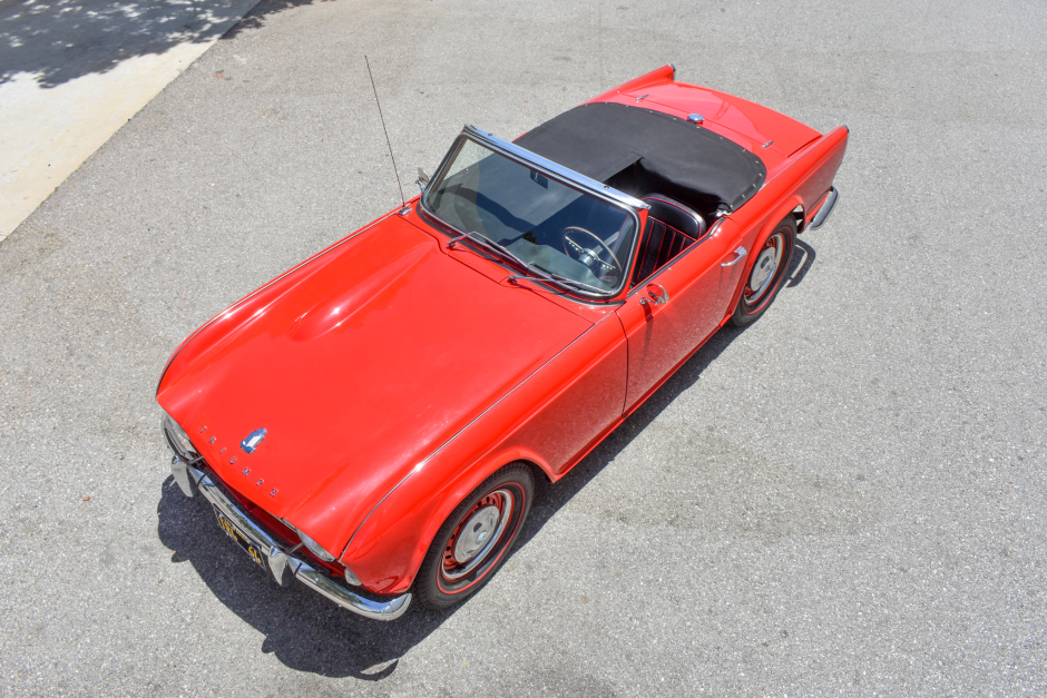 This 1965 Triumph TR4 was built on January 1, 1965, and was acquired by the current owner in 2018. The car is finished in red with a black soft top over black upholstery, and power comes from a 2.1-liter inline-four paired with a four-speed manual transmission. Equipment includes LED headlights, PerTronix electronic ignition, a center console, an Alpine CD player, a Viper alarm system, and a burl wood dash panel. An April 2021 service included the installation of…
