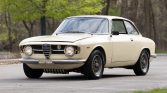 This 1966 Alfa Romeo GT 1300 Junior is finished in light yellow over black vinyl and is powered by a replacement 1.6-liter inline-four paired with a five-speed manual transmission. Equipment includes BWA wheels, disc brakes, and twin Weber carburetors. The car was sold new in Catania, Italy on December 22, 1966, and was acquired by the seller from a family member in 1996. Maintenance in 2019 reportedly included an oil change, tune-up, and carburetor rebuild.