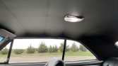The seats and door panels were reupholstered in black vinyl and suede using an interior kit from TMI Products. Additional features include a body-colored dashboard, Vintage Air GenIV air conditioning system, a center console, a push-button starter, aftermarket sound deadening, black floor mats, and a hidden Bluetooth-enabled stereo system. The door handles and window cranks are replacement items aLording to the seller.
