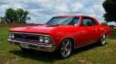 This 1966 Chevrolet Chevelle SS was acquired by the seller as a partially-disassembled project approximately five years ago and has since been refurbished and modified. The car received a body-off repaint in red and was fitted with a 427ci V8 equipped with FiTech fuel injection. The interior was refreshed with black vinyl upholstery, and additional equipment includes a four-speed manual transmission, a 3.90 Detroit Truetrac rear end, four-wheel disc brakes, 18” Boyd wheels, Super Sport badging, a digital stereo,…