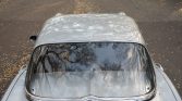 The fiberglass bodywork came factory-finished in Silver Pearl (986) and features a black soft top. A replacement power antenna motor has been fitted and the pop-up headlight motors have been rebuilt per the seller. Additional features include a body-colored removable hardtop, a driver’s side-view mirror, front fender vents, side-exit exhaust pipes, and chrome split bumpers. Replacement weatherstripping on the body and top has been installed, and areas of chipped and flaking paintwork are present. Other flaws noted by the seller include uneven panel gaps, a warped hood, a crack in the fiberglass underneath the rear bumper, and evidence of previous repairs around the driver-side rear fender and front inner fender well.