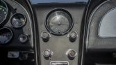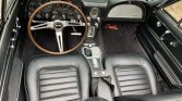 The bucket seat frames were rebuilt and reupholstered with black vinyl, and the cabin features matching door panels and replacement carpets lined with Corvette Sting Ray-branded floor mats. Amenities include power-assisted steering, a vertically-mounted Delco push-button AM/FM radio, a rear-mounted fire extinguisher, and power windows. The seller reports that various trim pieces and switchgear have been replaced. The clock is reported to be inoperable.