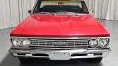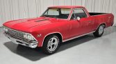 This 1966 Chevrolet El Camino is powered by a 396ci V8 mated to a three-speed automatic transmission and is finished in red over a black vinyl interior. Features include power steering and brakes, 15″ Torq-Thrust wheels, an SS-style hood, an Edelbrock intake manifold and four-barrel carburetor, long-tube headers, an 8.2″ rear end, and a six-foot bed with a spray-in liner and a drop-down tailgate.