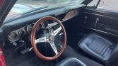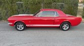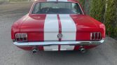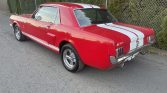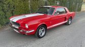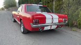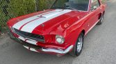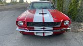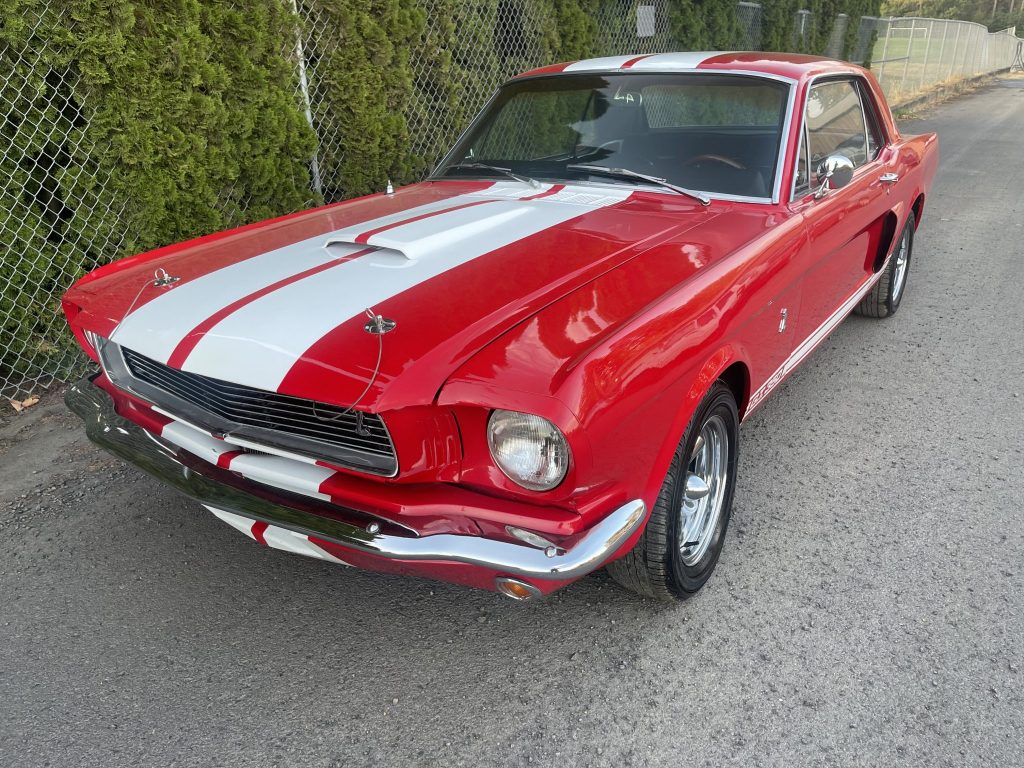 This 1966 Ford Mustang is a C-code coupe that was assembled in San Jose, California and is finished in red with white stripes over a black interior. Power comes from an overbored 289ci V8 that is fitted with aluminum cylinder heads, an upgraded camshaft, and an Edelbrock carburetor. Additional equipment includes a three-speed automatic transmission, a GT350-style hood and front valance, power-assisted steering, aftermarket 14″ wheels, and a stainless-steel dual exhaust system.