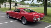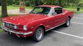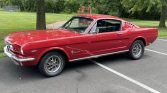 This 1966 Ford Mustang fastback is powered by a 289ci V8 paired with a four-speed manual transmission, and it has been refinished in red over a black interior. Equipment includes styled wheels, front disc brakes, folding rear seats, an aftermarket carburetor, a wood-rimmed steering wheel, and a retro-style modern radio. The car is said to have originally resided in Alaska and was relocated to Minnesota before the seller obtained it from the reported second owner in late…