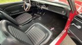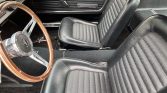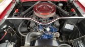Chrome 14″ styled steel wheels wear beauty rings and feature red Mustang centers. Size 215/60 front and 245/60 rear BFGoodrich Radial T/A tires with raised white letters show 2018 and 2019 date codes. The car has front disc and rear drum brakes, the former of which the seller has had serviced. A matching spare tire is located in the trunk.