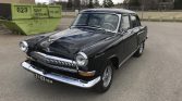The third series GAZ Volga 21 was introduced in 1962, and this example is believed to have been repainted in black under previous ownership. It features bi-color taillights, mud flaps, tinted windows, dual mirrors, a chrome 36-slat grille, and a prancing deer hood ornament. A Soviet-era number plate is fitted up front, and the rear license plate is included in the sale.