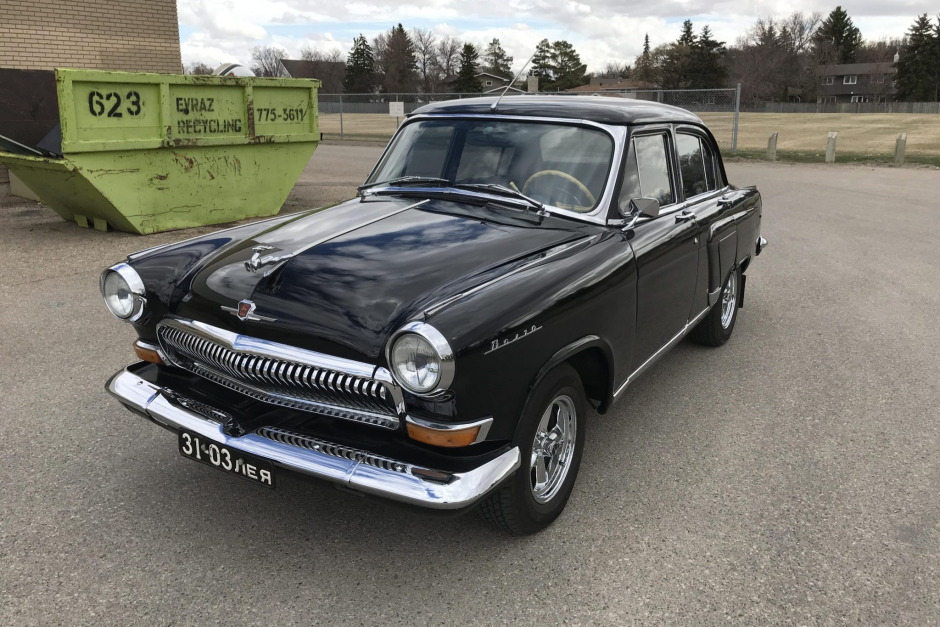 This 1966 GAZ Volga 21 is said to have been used by the Soviet Embassy in Sao Paulo, Brazil, before it was returned to Russia following the collapse of the Soviet Union. It was subsequently refurbished and fitted with a 3.0-liter Toyota 3VZ-E V6 before it was imported to the US, where it acquired by the seller and subsequently imported to Canada in 2017. The car is finished in black over two-tone gray upholstery, and equipment includes an automatic transmission, four-wheel disc brakes, 15″ chrome five-spoke wheels, air conditioning, and a retro-style stereo.