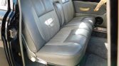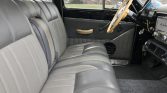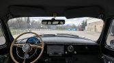 The cabin features front and rear benches that were reupholstered in two-tone gray under previous ownership. Matching door panels and gray carpets are fitted, and equipment includes an under-dash air-conditioning unit and a retro-style stereo. The clock is inoperable, and the speakers work intermittently.