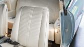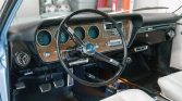 Steel 14″ Rally wheels feature gray centers and polished trim rings and are mounted with 7.75-width redline Firestone tires. Braking is handled by drums at all four corners, and the car came equipped from the factory with power steering and brakes.