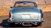The car is finished in light blue and features black rocker stripes as well as chrome bumpers, front grilles, and side mirrors.