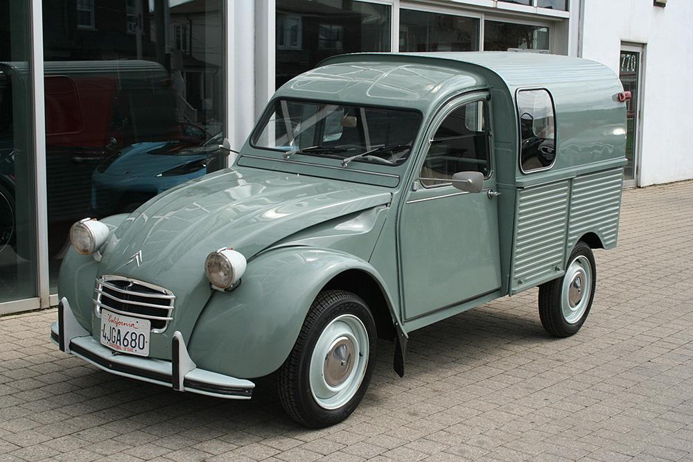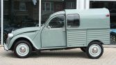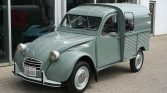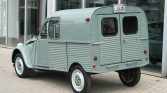 This 1967 Citroen 2CV Fourgonnette panel van is said to have undergone a cosmetic refurbishment some time ago and is finished in gray-green. Power is supplied by a 425cc flat-twin paired with a four-speed manual transaxle, and additional features include swing-out rear doors, removable metal-frame seats with striped fabric upholstery, and body-color 15” steel wheels with chrome hubcaps.