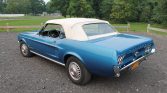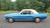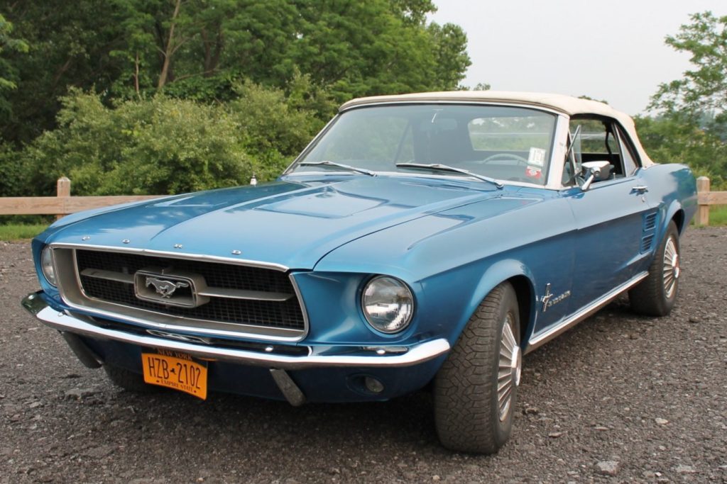 This 1967 Ford Mustang convertible is finished in blue over a matching interior and is powered by a 289ci V8 paired with a three-speed automatic transmission. Equipment includes a power-operated white convertible top, a Holley carburetor, an aftermarket exhaust, and an aftermarket AM/FM/cassette stereo. The car was first delivered to the Buffalo, New York, sales district and was acquired by the seller in 2018. Body work and a repaint were reportedly completed in the early 1990s, and…
