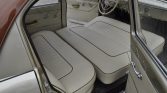 Tan-painted 15″ wheels wear polished hub caps and are mounted with 195/80 Continental 4×4 Contact tires with add-on whitewall rings. Stopping power is provided by four-wheel drum brakes, and the car features independent front suspension.