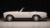 The car is finished in white with a body-color Pagoda top and a black soft top.