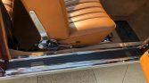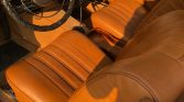 The interior features front bucket seats and a rear bench that are said to have been reupholstered with tan leather imported from Germany. Striped wood trim aLents the dashboard, and amenities include air conditioning, an analog VDO clock, and a Sony CD stereo, which is mounted in the factory location.