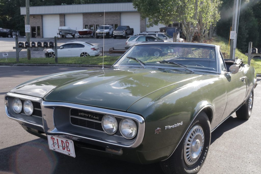 This 1967 Pontiac Firebird convertible was produced at GM’s Lordstown, Ohio facility, and it was recently acquired by the seller from the family of its reported original owner out of Alabama. The car has been refinished in green over retrimmed black vinyl upholstery, and power is provided by a 326ci V8 paired with a three-speed manual transmission. Additional features include a replacement black convertible top, a Delco AM radio, a center console, woodgrain trim, and front bucket seats.