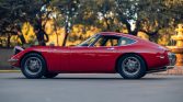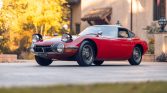 This 1967 Toyota 2000GT is one of 351 examples built during a three-year production run and is said to have originally been sold in Mozambique. Chassis 10128 reportedly went on to be acquired by a South African collector in the late 1970s and made a brief stop in the US in 1986 before being purchased by a Costa Rican Toyota importer, with whom it spent the following 28 years. A refurbishment was performed by Restauraciones Clásicas in Costa Rica between 2013 and 2014 before purchase by a UK owner. Finished in Solar Red over black vinyl, it is powered by a 1,988cc DOHC inline-six that breathes through triple Mikuni-Solex carburetors. Additional equipment includes a five-speed manual transmission, a limited-slip differential, servo-assisted disc brakes, four-wheel independent suspension, and 15” magnesium alloy wheels.