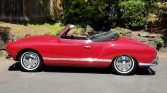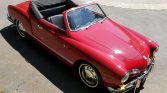This 1967 Volkswagen Karmann Ghia is one of 4,183 convertibles built for the model year and was acquired by the seller in 2019, reportedly following several years of display on the showroom floor of a California dealership. The car is finished in red with a black interior and soft top, and it is powered by a 1.5-liter flat-four paired with a four-speed manual transaxle. Features include a woodgrain dash, a folding rear bench seat, a black top…