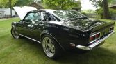 This 1968 Chevrolet Camaro RS was acquired by the seller in 1981 and underwent a body-off refurbishment completed in 2013 that included replacing the floor, roof, and quarter panels, a repaint, reupholstering the interior, and rebuilding the brakes and suspension. The car is finished in black with a gray front accent stripe over black vinyl and is powered by a 383ci stroker V8 paired with a Tremec five-speed manual transmission. Additional equipment includes the Rally Sport equipment package, 18″ alloy wheels, BAER disc brakes, front and rear lip spoilers, chrome bumpers, an SS-style hood, a center console with auxiliary gauges, and a push-button AM/FM radio.