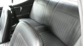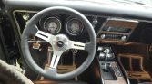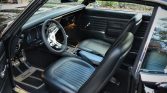 The bucket seating was retrimmed in black vinyl as part of the 2013 refurbishment, and a replacement dashboard, headliner, and carpets were installed. Woodgrain trim adorns the dashboard and center console, and additional features include lap belts for the front seats, courtesy lights, rubber Camaro-branded floor mats, a glovebox, and a push-button AM/FM radio.