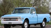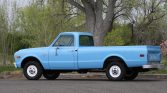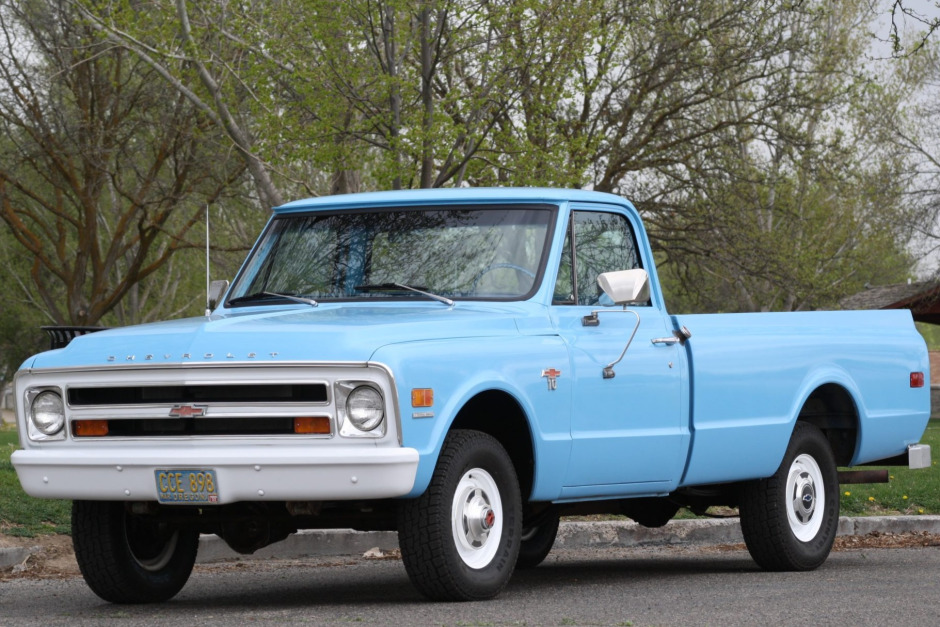 This 1968 Chevrolet K10 pickup is a long-bed model that is finished in Light Blue over a blue vinyl interior and is powered by a 307ci V8 paired with an optional four-speed manual transmission and a dual-range transfer case. The truck was sold new from Johannsen Motors of Emmett, Idaho, and it reportedly resided with the same family in Oregon from new until it was acquired by the selling dealer in March 2021. Now showing just under 23k miles, features include 15″ steel wheels with chrome hub caps, a push-button AM radio, manually-locking front hubs, and a rear step bumper with a receiver hitch.