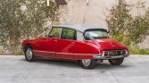 This 1968 Citroen DS21 Pallas is finished in red over black leather and was acquired by the current owner in 2010. Power comes from a 2.1-liter inline-four paired with a four-speed semi-automatic transaxle, and features include a hydropneumatic suspension, a Sonopex AM/FM radio, power-assisted steering and brakes, US-specification headlights, and 15” steel wheels with polished covers.