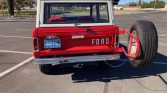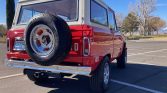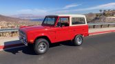This 1968 Ford Bronco is refinished in Rangoon Red over red vinyl and black cloth and is powered by a replacement 5.0-liter V8 that was installed under prior ownership. Power is sent to the rear or all four wheels through a three-speed manual transmission, a Dana 20 dual-range transfer case, a Dana 30 front axle, and a limited-slip rear differential. Additional equipment includes aluminum cylinder heads, front disc brakes, 15″ slotted alloy wheels, a removable white hardtop, and dual fuel tanks.