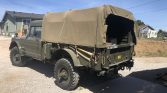 The body-color steel wheels are mounted with Military-style tires. Braking is handled by hydraulic drums at all four corners.