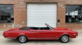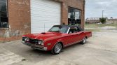 This 1968 Mercury Montego MX convertible is finished in red with black stripes over black vinyl upholstery, and power is provided by a 302ci V8 paired with a three-speed automatic transmission. Equipment includes a black soft top, an eight-track player, bucket seats, and a center console with a floor-mounted shifter. The power steering return line was replaced and the automatic transmission fluid was changed in January 2021.