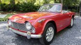 This 1968 Triumph TR4A IRS was purchased new in Tennessee and was acquired by the seller in 2015, reportedly from the estate of its original owner. The car is finished in red over black leather and powered by a 2,138L inline-four paired with a four-speed manual transmission with overdrive. Equipment includes independent rear suspension, dual SU carburetors, 15″ Minilite wheels, and a luggage rack. Work carried out during current ownership included installing a replacement transmission and clutch, a…